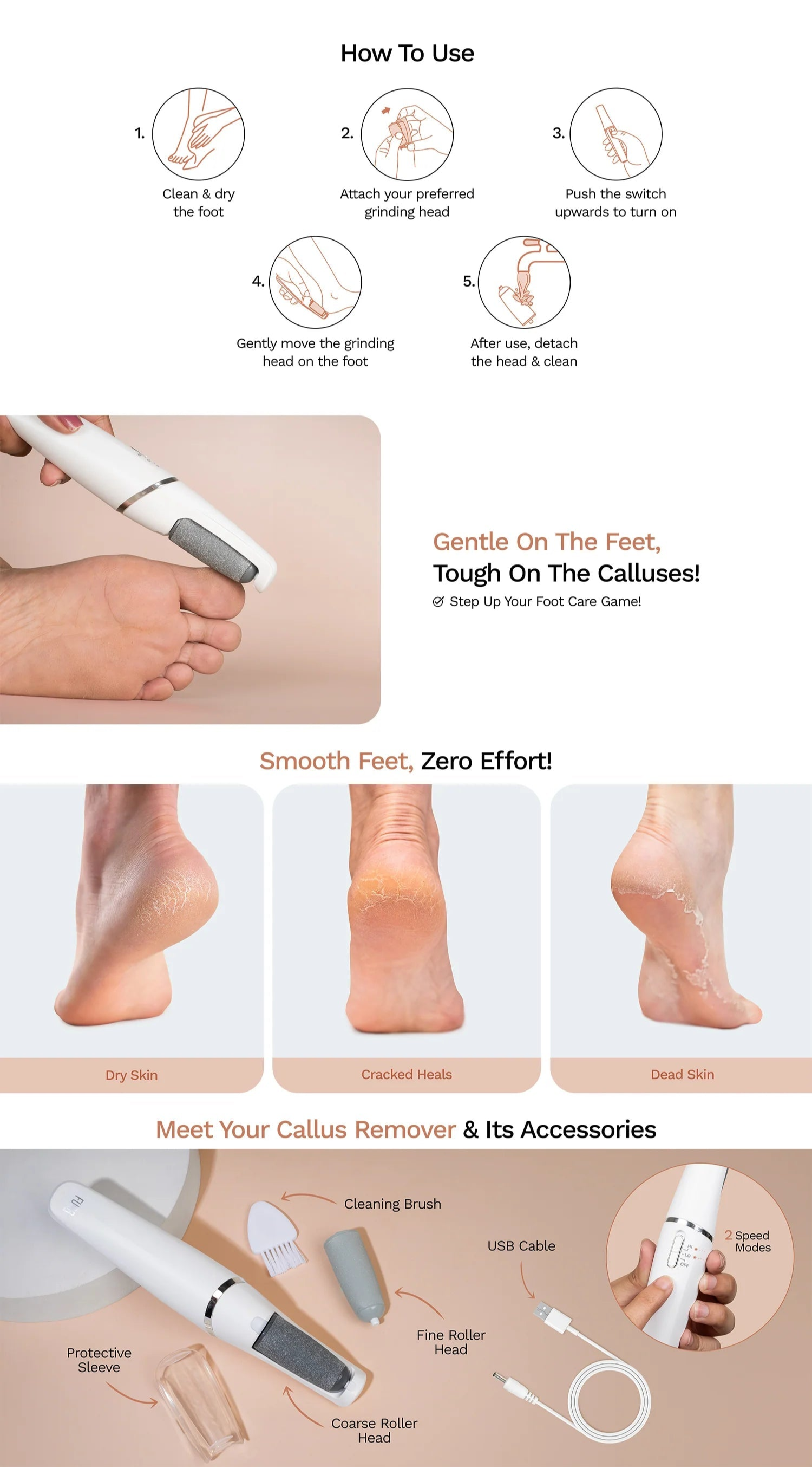 For optimal results, ensure your feet are clean and dry. Gently glide the rotating head over callused or rough areas, applying light to medium pressure. The tool will exfoliate and smooth your skin effortlessly. Always follow with a moisturizer for silky soft feet.